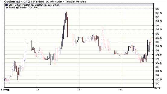 8月4日,紐約期棉先抑后揚(yáng),雖外圍市場(chǎng)普遍弱勢(shì),但期棉受到自身買盤支持,主力合約中幅收漲。當(dāng)日市場(chǎng)開(kāi)盤后經(jīng)歷短暫上揚(yáng)后價(jià)格回落,外圍商品市場(chǎng)及美國(guó)股市承壓下挫給棉市帶來(lái)利空,午盤左右時(shí)主力合約達(dá)到當(dāng)日最低點(diǎn)102.51美分/磅。后受到空頭回補(bǔ)買盤的支撐,期棉低點(diǎn)反彈,最終收于104.92美分/磅,漲76點(diǎn)。近期10月合約收于105.01美分/磅,漲59點(diǎn)。1207和1010月合約漲幅較大,超過(guò)200點(diǎn)。