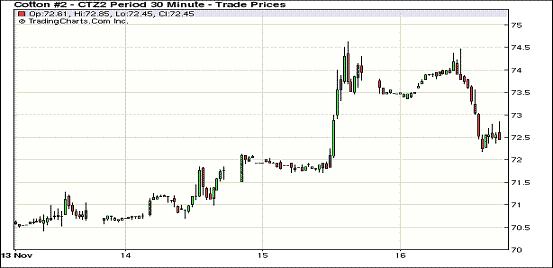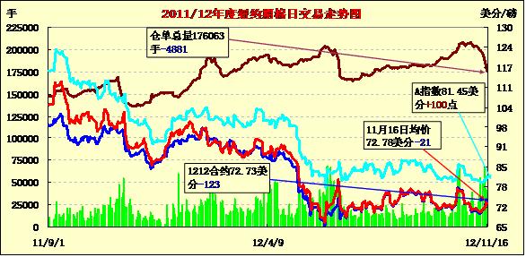 11月16日,紐約期棉市場漲跌不一,近期12月合約結(jié)算價72.73美分/磅,跌123點,1303月合約72.64美分,漲40點。上周美棉出口增加,對主力合約形成支持。當(dāng)日12月合約先漲后跌,早盤主要在73.5美分一線波動,盤中突破74美分,因獲利了結(jié)賣盤打壓從高位一路回落,最終跌破73美分;3月合約低開后區(qū)間盤整,上行突破72.5美分有難度,下行在72美分有支撐。據(jù)美國農(nóng)業(yè)部報告,上周美棉出口增加,對主力合約形成支持。技術(shù)上,主力3月合約位于20日均線之上,如能上漲至73美分以上,則將突破50日均線。 據(jù)美國農(nóng)業(yè)部(USDA),11.2-11.8一周美國凈簽約出口本年度陸地棉83937噸(較前一周增39%,較近四周平均值大幅增加)。當(dāng)周簽約本年度陸地棉最多的國家和地區(qū)有:巴基斯坦(27510噸)、中國(16465噸)和土耳其(14923噸)等地。