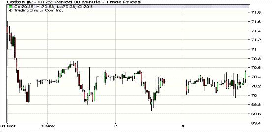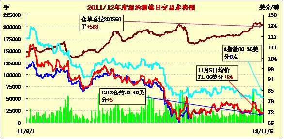 11月5日,紐約期棉市場波動空間較窄,前三個合約微幅收漲,其他合約穩(wěn)中有跌,近期12月合約結(jié)算價70.4美分/磅,漲5點(diǎn),1303月合約71.65美分,漲21點(diǎn)。因缺乏新鮮消息刺激,周一紐約期棉市場交易空間不大,整日交易以12/3月轉(zhuǎn)倉交易為主,12月合約在69.95-70.53美分區(qū)間波動,上下波幅僅58點(diǎn),技術(shù)上該合約在70美分獲得支撐,收盤仍維持在此水平線上。市場密切關(guān)注本周五USDA(美國農(nóng)業(yè)部)全球供需預(yù)測月報(bào),希望該報(bào)告給市場帶來指引。近期市場持續(xù)在70美分一線尋找支撐,遠(yuǎn)期市場想要反彈,主要看全球經(jīng)濟(jì)情況。