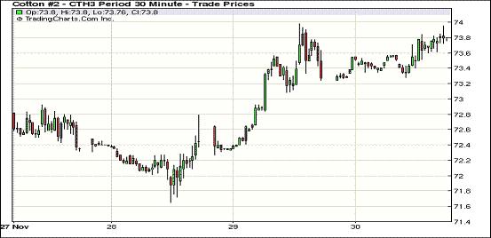 11月30日,紐約期棉未受到小麥期貨大幅下挫的影響,3月合約在買盤介入下繼續(xù)收漲,只不過未能觸及前日最高價(jià),成交量也出現(xiàn)下滑。但現(xiàn)貨市場則出現(xiàn)爆發(fā)性的放量,11月中旬來,日均成交近3萬包,相當(dāng)于此前日均時的8.5倍。分析認(rèn)為,目前,美國經(jīng)濟(jì)依然受到財(cái)政懸崖的威脅,全球需求尚未出現(xiàn)實(shí)質(zhì)性好轉(zhuǎn),因此棉價(jià)挑戰(zhàn)74美分的阻力有一定難度。
