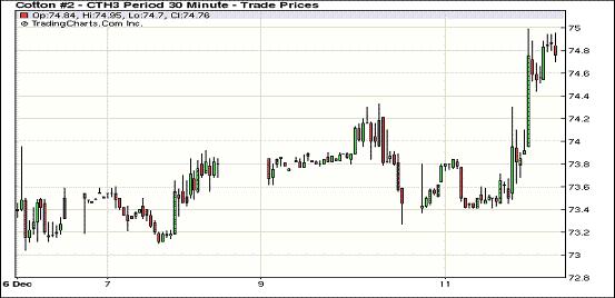12月11日,美國農(nóng)業(yè)部12月份月報調(diào)低本年度全球棉花期末庫存,紐約期棉受支持強勢反彈,主力1303月合約結(jié)算價74.90美分/磅,漲150點;1305月合約結(jié)算價75.79美分/磅,漲144點;其他遠期遠期合約漲幅60-137點不等。市場成交量有所上漲,登記庫存大幅增加。當日期棉早盤運行較為平穩(wěn),主力合約在73.4-73.8之間窄幅震蕩,后USDA全球棉花供需預(yù)測報告利好促投資者入市買盤,該合約挑戰(zhàn)75美分阻力位失敗,當日最高點至74.99美分/磅,尾盤雖回吐部分漲幅,但盤終仍收于10月22日以來最高點。當日外部谷物商品市場普遍走低,原油期貨走高。據(jù)USDA最新預(yù)測,本年度全球棉花期初庫存1506萬噸,較上次預(yù)測調(diào)減10萬噸;產(chǎn)量2545萬噸,調(diào)增2萬噸;消費2318萬噸,調(diào)增3萬噸;期末庫存1734萬噸,調(diào)減14萬噸。