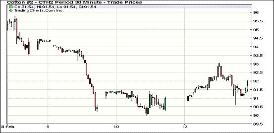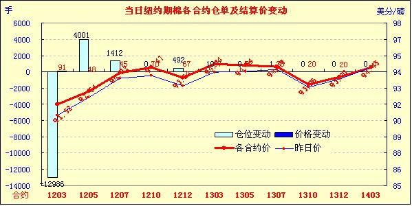 2月13日美元指數(shù)走強(qiáng),美股及外部商品市場(chǎng)普遍走高;基本面上美國(guó)國(guó)家棉花總會(huì)預(yù)計(jì)美下年度植棉面積下降,在上述利好因素支持下,紐約期棉繼續(xù)維持上周五的漲勢(shì),近期1203月合約結(jié)算價(jià)91.52美分/磅,漲91點(diǎn),1205月合約結(jié)算價(jià)92.54美分/磅,漲48點(diǎn),其他遠(yuǎn)期合約也普遍小幅或中幅收漲。當(dāng)日市場(chǎng)開盤后震蕩上行,近期3月合約至當(dāng)日最高點(diǎn)93.05美分/磅,5月合約最高至94.18美分/磅;后賣盤涌入,期棉承壓下跌,3月及5月合約震蕩幅度分別為243點(diǎn)和240點(diǎn);交易后段期棉在外部商品市場(chǎng)普遍走高帶動(dòng)下低點(diǎn)反彈,盤終各合約均告漲。昨日希臘議會(huì)批準(zhǔn)緊縮措施,市場(chǎng)對(duì)歐債危機(jī)解決前景看好促使商品市場(chǎng)普遍上漲;據(jù)NCC(美國(guó)國(guó)家棉花總會(huì)),2012年美國(guó)棉花種植面積預(yù)計(jì)為1362.8萬英畝,同比減少7.5%,這對(duì)期棉形成利好支撐,當(dāng)日普遍小幅或中幅上漲。