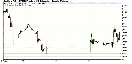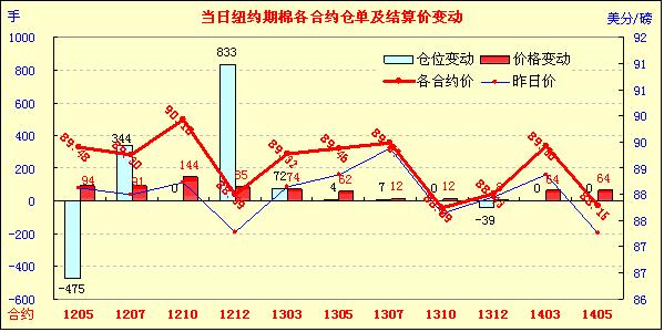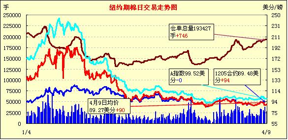 在復(fù)活節(jié)假期恢復(fù)交易后,9日紐約期棉因?qū)SDA(美國農(nóng)業(yè)部)即將發(fā)布的供需預(yù)測(cè)報(bào)告預(yù)期利好而止跌收漲,近期5月合約結(jié)算價(jià)89.48美分/磅,漲94點(diǎn),1212月合約88.39美分,漲85點(diǎn)。市場(chǎng)平穩(wěn)開盤,交易中期在89-89.5美分一線平淡交易,交易后期有指數(shù)基金買盤進(jìn)入,刺激市場(chǎng)走高,5月合約突破90美分,漲幅過百,交易尾段回吐少量漲幅,最終收漲90余點(diǎn)。分析師指出,4月10日USDA將發(fā)布全球供需預(yù)測(cè)報(bào)告,預(yù)計(jì)美棉2012/13年度產(chǎn)量有可能調(diào)低,出口量有調(diào)增可能,對(duì)期棉市場(chǎng)有利。日前,印度紡織部建議能對(duì)棉花出口加征10000盧比/噸(約合195美元/噸)的關(guān)稅,限制出口保障國內(nèi)企業(yè)用棉需求,而同時(shí),印度貿(mào)易部兼紡織部部長夏馬指出,在相關(guān)部門對(duì)今年1月份裝運(yùn)出去的棉花監(jiān)測(cè)完是否在其他國家囤積之前,印度不會(huì)解除對(duì)棉花出口的禁令。