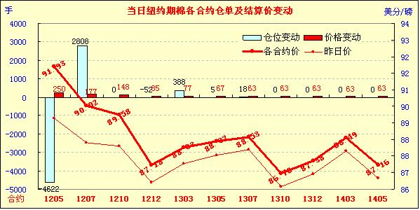 4月18日,投機(jī)買(mǎi)盤(pán)給予支持促紐約期棉市場(chǎng)持續(xù)走高,近期5月合約結(jié)算價(jià)91.93美分/磅,漲250點(diǎn),1207月合約90.02美分,漲177點(diǎn),1212月合約87.18美分,漲85點(diǎn)。當(dāng)日市場(chǎng)全面高開(kāi),盤(pán)中穩(wěn)定波動(dòng),5/7月合約轉(zhuǎn)倉(cāng)以及7/12月合約轉(zhuǎn)倉(cāng)活躍,印度棉花咨詢委員會(huì)昨日公布了棉花產(chǎn)消存報(bào)告,報(bào)告稱(chēng):印度棉花期初庫(kù)存391萬(wàn)包(66.5萬(wàn)噸),產(chǎn)量3470萬(wàn)包(589.9萬(wàn)噸),消費(fèi)2520萬(wàn)包(428.4萬(wàn)噸),進(jìn)口60萬(wàn)包(10.2萬(wàn)噸),出口1150萬(wàn)包(195.5萬(wàn)噸),期末庫(kù)存251萬(wàn)包(42.7萬(wàn)噸)。根據(jù)上述數(shù)據(jù),預(yù)計(jì)印度政府將不會(huì)再允許新的棉花出口。根據(jù)數(shù)據(jù),預(yù)計(jì)印度政府將不會(huì)再允許新的棉花出口,此消息提振了18日美棉期貨市場(chǎng),交易后期受投機(jī)買(mǎi)盤(pán)和空頭平倉(cāng)支持,市場(chǎng)漲幅擴(kuò)大,最終全面收漲。當(dāng)日市場(chǎng)全面高開(kāi),盤(pán)中穩(wěn)定波動(dòng),5/7月合約轉(zhuǎn)倉(cāng)以及7/12月合約轉(zhuǎn)倉(cāng)活躍,印度棉花咨詢委員會(huì)昨日公布了棉花產(chǎn)消存報(bào)告,根據(jù)數(shù)據(jù),預(yù)計(jì)印度政府將不會(huì)再允許新的棉花出口,此消息提振了18日美棉期貨市場(chǎng),交易后期受投機(jī)買(mǎi)盤(pán)和空頭平倉(cāng)支持,市場(chǎng)漲幅擴(kuò)大,最終全面收漲。