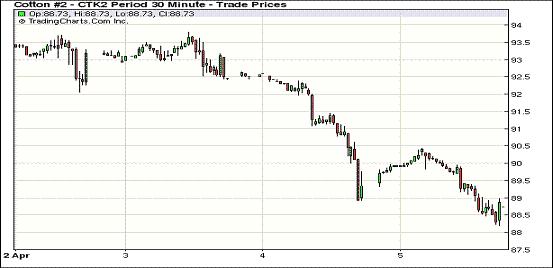 4月5日紐約期棉市場受美棉出口周報利空影響再度收跌,近期5月合約結(jié)算價88.54美分/磅,跌78點,為自3月21日以來的低點;1212月合約87.54美分,跌72點。近期5月合約平穩(wěn)開盤后早盤在90美分左右窄幅波動,但當USDA(美國農(nóng)業(yè)部)3月29日一周美棉出口周報發(fā)布后,市場重心下移,后市走低并收跌。據(jù)USDA報告,當周有大量美棉前期訂單被取消,有業(yè)內(nèi)人士擔心如果美棉價格進一步下跌,后期將仍有合約被取消。3.23-3.29日一周美國凈簽約出口本年度陸地棉負32590噸,取消的主要有中國(-24131噸)和巴西(-9979噸)。