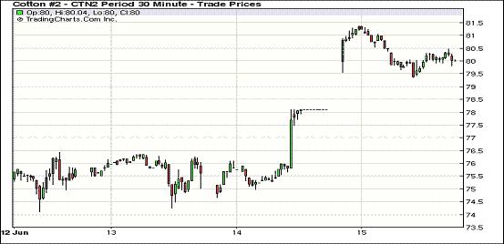 紐約期棉美元下跌跳空高開(kāi)續(xù)漲(6-15)