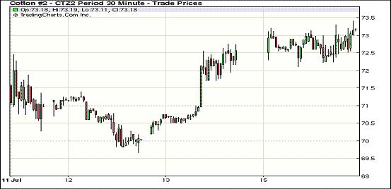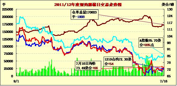 7月16日,受美元走低及外部商品市場普遍走高支持,紐約期棉延續(xù)上周五的漲勢繼續(xù)上揚(yáng)。近期10月合約結(jié)算價72.30美分/磅,漲54點(diǎn);主力12月合約結(jié)算價73.30美分/磅,漲64點(diǎn);其他遠(yuǎn)期合約漲幅30-52點(diǎn)不等。當(dāng)日市場平穩(wěn)開盤,主力合約自7月5日以來接近72.75美分/磅關(guān)鍵阻力位,當(dāng)日輕松突破該阻力位并收于73美分之上,其下一個阻力位為74美分。12/3月合約價差從上周五的111點(diǎn)縮小到87點(diǎn)。當(dāng)日美元兌主要貨幣走低,市場圍繞美國聯(lián)邦儲備委員會將采取經(jīng)濟(jì)刺激措施的預(yù)期升溫,抵消了疲軟的美國零售數(shù)據(jù)及對中國經(jīng)濟(jì)悲觀情緒的負(fù)面影響,這促使商品市場普遍走高。