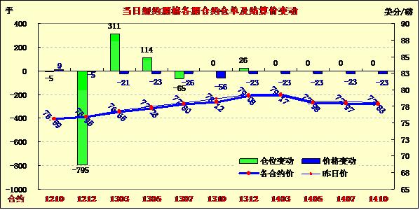 8月9日,紐約期棉除近期10月合約微幅上漲外,其他合約普遍小幅收跌,10月合約結(jié)算價75.59美分/磅,漲9點;主力12月合約結(jié)算價75.95美分/磅,跌5點。市場密切關(guān)注美國農(nóng)業(yè)部將于今晚發(fā)布的供需預測報告。當日市場小幅低開,主力12月合約上半場在75.8-76美分之間窄幅震蕩;午盤后買盤涌入促該合約上揚,盤中自5月中旬以來首次突破77美分,當日最高至77.07美分/磅,震蕩幅度162點;后買盤獲利平倉回吐全部漲幅,盤終該合約微幅收跌。當日外部商品市場普遍上揚。雖然市場預計美國農(nóng)業(yè)部報告將下調(diào)全球棉花期末庫存,但12/13年度庫存仍會繼續(xù)攀升。紐約期棉在報告公布前一個交易日小幅盤整,靜候報告指引方向。