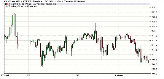 8月1日,因美聯(lián)儲(chǔ)未如預(yù)期那樣推出新刺激措施令投資者感到失望,美元走強(qiáng)、美股及外部谷物市場(chǎng)普遍走低,紐約期棉也承壓整體收跌,近期10月合約收于70.06美分/磅,跌52點(diǎn);主力12月合約結(jié)算價(jià)70.56美分/磅,跌78點(diǎn);其他遠(yuǎn)期合約普遍大幅收跌。當(dāng)日市場(chǎng)平開(kāi)低走,美聯(lián)儲(chǔ)未推出新經(jīng)濟(jì)舉措導(dǎo)致賣盤涌入,打壓市場(chǎng)一路下行,主力12月合約當(dāng)日最低至70.53美分/磅。成交量較前幾日有所增加,但遠(yuǎn)低于年內(nèi)日成交均值。美國(guó)聯(lián)邦儲(chǔ)備委員會(huì)的經(jīng)濟(jì)評(píng)估更為悲觀,并在6月份預(yù)期基礎(chǔ)上下調(diào)了經(jīng)濟(jì)預(yù)期,但并未采取任何新的政策舉動(dòng),因此美元空頭平倉(cāng),進(jìn)而推動(dòng)美元走高,股市及商品市場(chǎng)整理承壓收低。