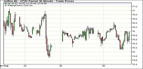 8月28日,紐約期棉在獲利平倉賣盤的打壓下中幅回落,近期10月合約收于74.79美分/磅,跌54點(diǎn);主力12月合約結(jié)算價(jià)75.62美分/磅,跌52點(diǎn)。市場在小長假前表現(xiàn)清淡,成交量在萬手上下徘徊。當(dāng)日市場小幅低開,主力合約早盤震蕩走高,當(dāng)日最高至76.44美分/磅;此高點(diǎn)遭遇交易商獲利平倉賣盤打壓,期棉高處回落,該合約至當(dāng)日最低點(diǎn)75.11美分/磅,震蕩幅度133點(diǎn);尾盤時(shí)分買盤再次入市促市場反彈回補(bǔ)部分跌幅,盤終該合約中幅回落。當(dāng)日外部大豆及原油市場走高,小麥及玉米走低。熱帶風(fēng)暴“艾薩克”在本周一促使期棉大幅走高,目前其已增強(qiáng)為颶風(fēng),周二剛剛離開墨西哥灣地區(qū)并開始接近在新奧爾良登陸,但預(yù)計(jì)主產(chǎn)棉區(qū)德州不會受到颶風(fēng)影響,市場密切關(guān)注颶風(fēng)的進(jìn)一步走勢。