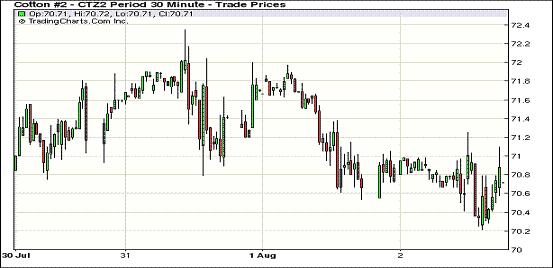 8月2日,雖然美元走強(qiáng)令股市及外部大宗商品市場普遍承壓走低,但紐約期棉在少量投機(jī)買盤支持下小幅收高,近期10月合約收于70.44美分/磅,漲38點(diǎn);主力12月合約結(jié)算價70.97美分/磅,漲41點(diǎn),其他遠(yuǎn)期合約漲幅15-61點(diǎn)不等。市場交易仍舊清淡,登記庫存持續(xù)下跌。當(dāng)日期棉平穩(wěn)開盤,上周美棉出口情況較前周有所改善,這提振期棉短暫走高,主力12月合約上半場圍繞70.80美分/磅震蕩;午盤后在外部商品市場走低拖累下,該合約至當(dāng)日最低點(diǎn)70.21美分/磅;尾盤時分投機(jī)性買盤入市促該合約反彈并小幅收高。經(jīng)濟(jì)面上,昨日因歐洲央行并未如市場預(yù)期推出危機(jī)應(yīng)對舉措,令投資者感到失望,股市及外部大宗商品市場普遍下跌。國際棉花咨詢委員會(ICAC)最新預(yù)測,本年度全球棉花期末庫存調(diào)低16.4萬噸,至1362.8萬噸;下年度期末庫存調(diào)高6萬噸,至1519萬噸,市場密切關(guān)注美國農(nóng)業(yè)部將于10日公布的供需預(yù)測報告。