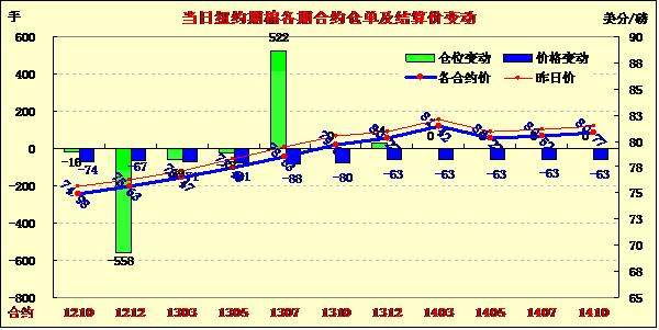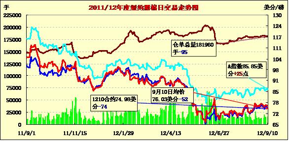 9月10日,紐約期棉市場(chǎng)整體收跌,短期經(jīng)濟(jì)面缺乏利好刺激及外圍谷物市場(chǎng)走低施壓,近期10月合約結(jié)算價(jià)74.98美分/磅,跌74點(diǎn),主力12月合約75.63美分,跌67點(diǎn)。當(dāng)日12月合約當(dāng)日波動(dòng)幅度上下相差137點(diǎn)。該合約開(kāi)盤穩(wěn)定,早盤在76-76.2美分間窄幅波動(dòng),盤中因外部市場(chǎng)壓力跌至日低水平,后試圖停留在76美分以上,尾段受賣盤打壓回落,收于關(guān)鍵支撐位76美分以下。市場(chǎng)預(yù)計(jì)在本周三的美聯(lián)儲(chǔ)會(huì)議上對(duì)于美聯(lián)儲(chǔ)是否會(huì)推出第三輪寬松政策持懷疑態(tài)度,有分析師表示,美聯(lián)儲(chǔ)更有可能在短期內(nèi)采取不太劇烈的步驟,例如將維持超低利率水平時(shí)期的政策指引延長(zhǎng)至2015年等,市場(chǎng)謹(jǐn)慎觀望。外圍谷物市場(chǎng)在美國(guó)農(nóng)業(yè)部(USDA)全球供需預(yù)測(cè)報(bào)告前弱勢(shì)調(diào)整,行情整體下跌。