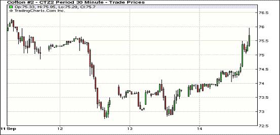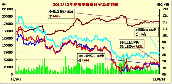 9月14日,紐約期棉市場受投機(jī)買盤支持大幅收漲,近期10月合約結(jié)算價(jià)75.39美分/磅,漲244點(diǎn),主力12月合約75.90美分,漲237點(diǎn)。市場當(dāng)日交易整體呈上行趨勢,12月合約穩(wěn)定開盤后走高,盤中再74-74.5美分區(qū)間運(yùn)行,交易后期,投機(jī)買盤發(fā)力,該合約突破75美分,尾段向76美分發(fā)起攻擊,因貿(mào)易賣盤打壓回吐部分漲幅,最終收于近高點(diǎn)。投機(jī)買盤主要借助的是前一日美聯(lián)儲(chǔ)的QE3政策效應(yīng)。技術(shù)面上,12月合約收于74.60美分/磅,對近期因美國農(nóng)業(yè)部供需報(bào)告利空而導(dǎo)致的下跌,在圖形上有所修復(fù)。外部商品市場整體走強(qiáng),期棉市場陷入基本面壓力和棉花的商品期貨屬性在進(jìn)一步博弈中。