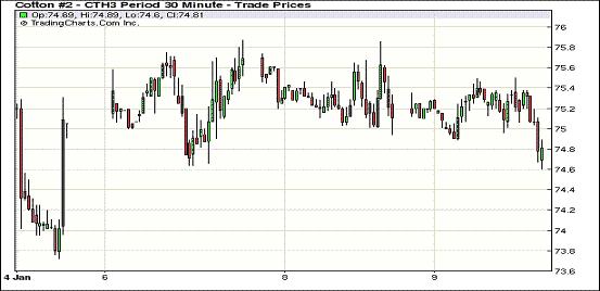 1月9日,紐約期棉市場整體下滑,本周五USDA(美國農(nóng)業(yè)部)將發(fā)布1月份全球供需預(yù)測報(bào)告,發(fā)布前市場陷入窄幅波動(dòng)的調(diào)整行情,近期3月合約結(jié)算價(jià)75.12美分/磅,跌59點(diǎn),1305月合約75.98美分,跌55點(diǎn)。當(dāng)日近期3月合約小幅低開,早盤和中期交易維持在75美分以上波動(dòng),中后期波動(dòng)幅度拉大,一度試圖上探76美分失敗,交易后期短暫跌破75美分,終以75.12美分收盤。分析師指出,USDA報(bào)告整體或繼續(xù)利空,全球期末庫存處于高位,消化前景不容樂觀,對價(jià)格形成壓制。