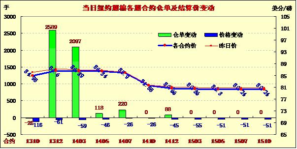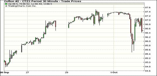 10月1日,在美國政府停運引發(fā)投資者擔(dān)憂及風(fēng)暴天氣或?qū)е旅绹轮菝藁ㄊ軗p并推遲上市等因素影響下,紐約期棉結(jié)束五連漲普遍回落,主力12月合約結(jié)算價86.60美分/磅,跌61點;遠期3月合約收于86.39美分/磅,跌59點。當(dāng)日市場平穩(wěn)開盤,主力12月合約早盤短暫上行至當(dāng)日最高點87.38美分/磅,后因美政府停運引發(fā)投資者擔(dān)憂,同時風(fēng)暴天氣繼續(xù)存在,市場受打壓回落,盤終該合約結(jié)束五連漲中幅收跌,跌幅大于外部商品市場。市場成交量較前一日增加。分析指出,交易商擔(dān)憂由于聯(lián)邦政府無限期停運,將導(dǎo)致一些關(guān)鍵的農(nóng)業(yè)數(shù)據(jù)無法發(fā)布。同時,目前美國棉區(qū)風(fēng)暴天氣可能損及美國最大棉花種植州德州的棉花作物,供應(yīng)可能吃緊。