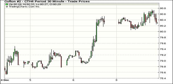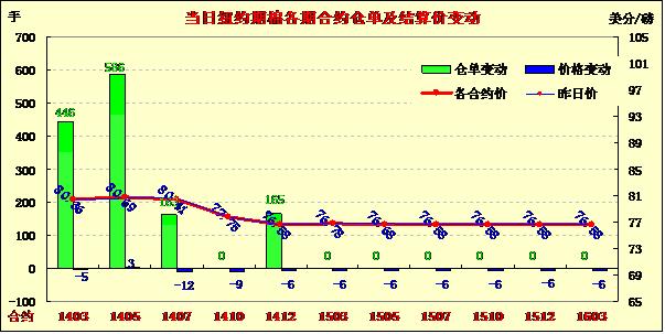 11月9日,紐約期棉除5月合約微漲外,其余合約均小幅下跌。主力3月合約收于80.36美分/磅,跌5點(diǎn);5月合約結(jié)算價(jià)80.69美分/磅,漲3點(diǎn);1407月合約收于80.41美分/磅,跌12點(diǎn)。當(dāng)日期棉開盤后窄幅震蕩,午盤過后買家入場(chǎng)拉動(dòng)期棉上漲,主力3月合約震蕩區(qū)間65點(diǎn),最高80.75美分/磅,市場(chǎng)成交額仍有限。USDA供需報(bào)告今日發(fā)布;上周五反彈性大漲將期棉帶入超賣境地,短期期棉上漲壓力增大。