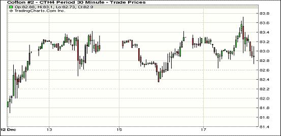 12月17日,紐約期棉結(jié)束近期漲勢(shì)整體下跌。主力3月合約收于82.95美分/磅,跌43點(diǎn);5月合約結(jié)算價(jià)82.65美分/磅,跌47點(diǎn);1407月合約收于82.18美分/磅,跌47點(diǎn)。當(dāng)日期棉開盤后整體小幅上漲,午盤后賣家入場(chǎng)打壓期棉遠(yuǎn)近合約整體下跌,主力3月合約震蕩區(qū)間82.64-83.72美分/磅,市場(chǎng)成交額相比上周仍較低,玉米和大豆期貨上漲未對(duì)期棉形成支撐。分析指出,期棉連續(xù)上漲多日后向下調(diào)整,市場(chǎng)超賣情況仍存;受中國(guó)進(jìn)口棉政策調(diào)整影響,全球棉花進(jìn)口量預(yù)計(jì)同比減16%。