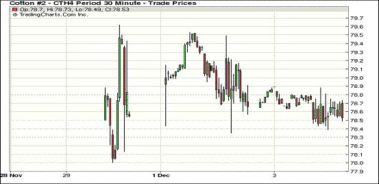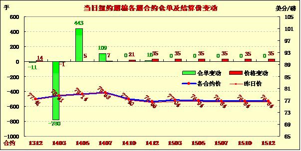 11月3日,中國(guó)拋儲(chǔ)持續(xù)為紐約期棉上行增加壓力,由于市場(chǎng)仍過(guò)度依賴(lài)中國(guó)棉花進(jìn)口,拋儲(chǔ)或?qū)γ迌r(jià)形成較大打擊。近期12月合約收于77.41美分/磅,漲14點(diǎn);主力3月合約結(jié)算價(jià)78.61美分/磅,跌1點(diǎn);1405月合約收于79.14美分/磅,漲5點(diǎn)。當(dāng)日期棉開(kāi)盤(pán)后普遍小幅上漲,主力3月合約延續(xù)前一日走勢(shì)在78.39至78.89美分區(qū)間震蕩,盤(pán)終較前一日收盤(pán)基本不變,市場(chǎng)成交額繼續(xù)萎縮。ICAC報(bào)告指出,本年度全球棉產(chǎn)量預(yù)計(jì)仍超消費(fèi)量180萬(wàn)噸;USDA12月份供需報(bào)告預(yù)計(jì)產(chǎn)量及期末庫(kù)存均上升,全球產(chǎn)量調(diào)增、種植成本增加,中國(guó)拋儲(chǔ)繼續(xù)等利空因素將打擊各國(guó)棉農(nóng)種植積極性,預(yù)計(jì)明年全球棉花播種面積將減小。