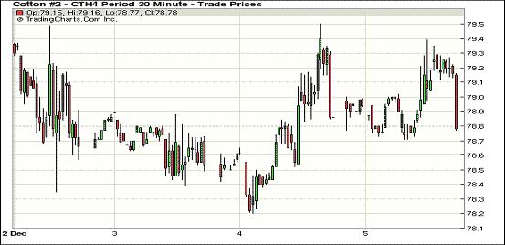 11月5日,基本面利空打擊期棉整體下跌。近期12月合約收于77.82美分/磅,跌20點(diǎn);主力3月合約結(jié)算價(jià)78.85美分/磅,跌20點(diǎn);1405月合約收于79.24美分/磅,跌28點(diǎn)。當(dāng)日期棉開盤后微幅震蕩,主力3月合約盤終跌破79美分至78.85美分/磅,12月合約早盤跌幅較大超百點(diǎn),后有所反彈,盤終略有下跌,6日為該合約最后一個(gè)交易日,市場成交額繼續(xù)縮水。美國農(nóng)業(yè)部數(shù)據(jù),至11.28一周美國凈簽約出口本年度陸地棉56382噸,裝運(yùn)24154噸,凈簽約量相比前一周略有下滑;市場期待USDA發(fā)布WASDE報(bào)告。