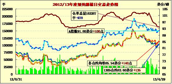 2013-05 84.00 84.00 82.50 82.25 83.60 135 67 12 278 -280