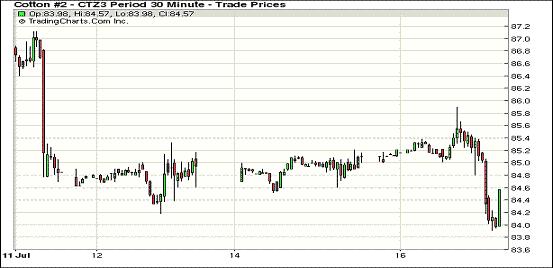 7月16日,受德州出現(xiàn)利好降雨及中國6月份棉花進(jìn)口量同比環(huán)比雙降影響,紐約期棉全面走低,10月合約結(jié)算價84.67美分/磅,跌68點(diǎn);主力12月合約結(jié)算價84.37美分/磅,跌73點(diǎn)。市場成交量有所上升。當(dāng)日市場隔夜走高,早盤運(yùn)行平穩(wěn),美最大產(chǎn)棉區(qū)的利好降雨兌現(xiàn)打壓市場走低,主力12月合約當(dāng)日最低至83.91美分/磅(-119點(diǎn)),后有所反彈回補(bǔ)部分跌幅,盤終仍收于6月28日以來最低值。盤面上遠(yuǎn)期合約也承受壓力,1403月合約當(dāng)日跌幅達(dá)百點(diǎn)。據(jù)報道,美國德州近兩日出現(xiàn)雨水天氣,雨量約1-2英寸,局部達(dá)3-4英寸,有助于緩解旱情并提高產(chǎn)量。中國6月份棉花進(jìn)口量同比減22%,環(huán)比減43%,需求下降對國際棉價形成壓力。
