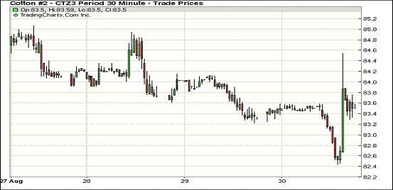 8月30日,紐約期棉近漲遠(yuǎn)跌;近期10月合約結(jié)算價(jià)83.70美分/磅,漲10點(diǎn);主力12月合約結(jié)算價(jià)83.49美分/磅,漲25點(diǎn);遠(yuǎn)期3月合約收于82.74美分/磅,漲43點(diǎn)。受近來(lái)持續(xù)下跌和市場(chǎng)賣(mài)盤(pán)打壓,主力12月合約午盤(pán)后跌至82.43美分的低位,后反彈至84.50的高點(diǎn),盤(pán)終略有上漲。