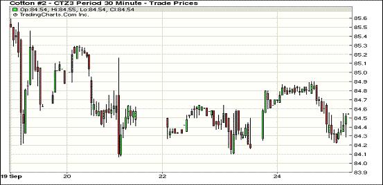 9月24日,紐約期棉近漲遠(yuǎn)跌,市場(chǎng)棉花消息面仍有限。近期10月合約結(jié)算價(jià)83.43美分/磅,漲42點(diǎn);主力12月合約結(jié)算價(jià)84.38美分/磅,漲11點(diǎn);遠(yuǎn)期3月合約收于84.29美分/磅,漲11點(diǎn)。當(dāng)日期棉早盤(pán)后延續(xù)前一日走勢(shì)窄幅震蕩,主力12月合約微幅調(diào)整后漲至84.9美分高點(diǎn),后逐步下行,尾盤(pán)回吐部分所得仍收漲,該合約近來(lái)10個(gè)交易日持續(xù)在84-85.5美分之間震蕩;當(dāng)日市場(chǎng)成交量明顯上升,其他遠(yuǎn)期合約普遍下跌。期棉繼續(xù)找尋市場(chǎng)支持點(diǎn),外部市場(chǎng)漲跌不一,美元疲軟及美棉苗情不確定性為棉價(jià)提供支撐。