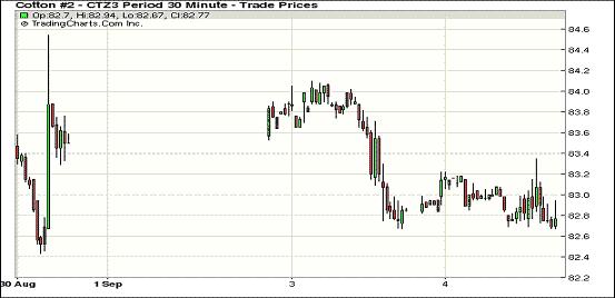 9月4日,紐約期棉窄幅震蕩成交清淡,收盤價(jià)格與前一日基本持平。近期10月合約結(jié)算價(jià)82.83美分/磅,漲1點(diǎn);主力12月合約結(jié)算價(jià)82.75美分/磅,漲4點(diǎn);遠(yuǎn)期3月合約收于82.32美分/磅,漲5點(diǎn)。