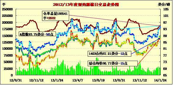 錦橋紡織網(wǎng)—資訊頻道> 棉花信息> 紐棉期貨>正文 紐約期棉縮量增倉三連陰(01-24)