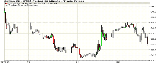 10月20日,棉花市場消息面有限,期棉先漲后跌;主力1412月合約結(jié)算價(jià)62.68美分/磅,跌11點(diǎn);遠(yuǎn)期1503月合約收于61.92美分/磅,漲1點(diǎn)。當(dāng)日期棉開盤后普遍上漲,午盤過后受市場賣盤壓力連續(xù)下跌,主力合約小幅收跌,12/3月價(jià)差由前一日的88點(diǎn)縮至76點(diǎn)。美國棉區(qū)天氣條件良好,采摘進(jìn)度同比加速,棉農(nóng)集中進(jìn)行采摘,供應(yīng)激增將會(huì)繼續(xù)對(duì)期棉走勢形成打壓。