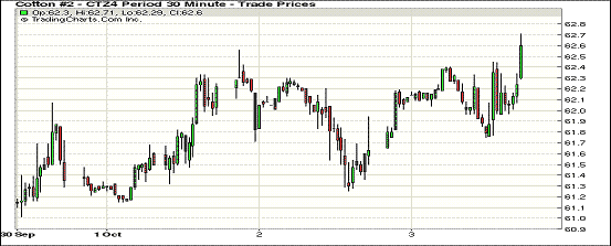 10月3日,紐約期棉結(jié)束下跌整體反彈;主力1412月合約結(jié)算價(jià)62.47美分/磅,漲62點(diǎn);遠(yuǎn)期1503月合約收于61.10美分/磅,漲57點(diǎn)。當(dāng)日期棉開(kāi)盤(pán)后小幅震蕩整理,3月合約經(jīng)歷前一日60美分以下走勢(shì)后,當(dāng)日最低跌至60.29美分,主力合約盤(pán)終漲62點(diǎn)。美國(guó)勞工部數(shù)據(jù)顯示,9月份國(guó)內(nèi)新增就業(yè)崗位近2.5萬(wàn)個(gè),失業(yè)率下滑至5.9%,為2008年中期以來(lái)最低點(diǎn),道瓊斯指數(shù)隨之上漲超200點(diǎn)。上周美棉采摘率10%,北半球新花上市將對(duì)棉價(jià)形成更大壓力。