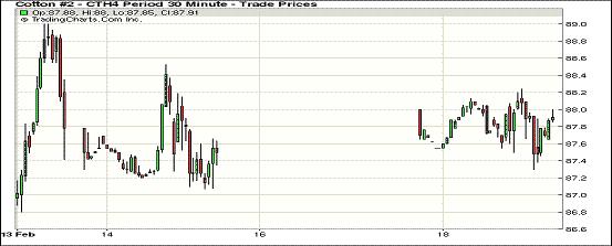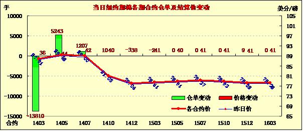 2月18日,受美元走低、外部商品市場普遍上揚支持,紐約期棉全面收高,近期1403月合約結(jié)算價87.91美分/磅,漲36點;主力1405月合約結(jié)算價89.48美分/磅,漲44點;1407月合約結(jié)算價89.00美分/磅,漲42點。當日期棉小幅高開,主力5月合約當日大部分時間在89美分/磅之上運行,接近尾盤時在賣盤打壓下短暫跌破89美分,當日最低至88.67美分/磅,震蕩區(qū)間96點;盤終中幅收漲。上周價差及基金移倉交易活躍,成交量在4萬手以上,本周交易量下降。