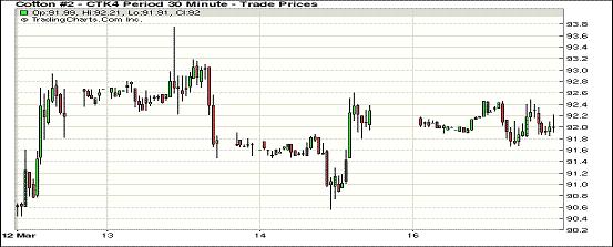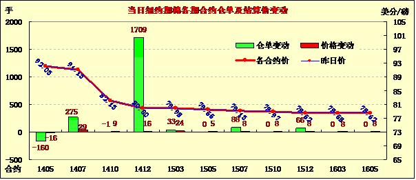 3月17日,紐約期棉除主力合約小幅下跌外,其余遠期合約均小幅上漲;主力5月合約結(jié)算價92.03美分/磅,跌16點;1407月合約收于91.13美分/磅,漲29點;1410月合約收于82.13美分/磅,漲9點。當(dāng)日主力5月合約開盤后震蕩區(qū)間82美分,盤終略有下跌,7/10月合約小幅上漲,1412合約自去年10月21日漲至80美分以上后(80.12),再次站上80美分/磅高位,玉米及大豆期貨價格下跌,美股上漲。當(dāng)日主力5月合約開盤后震蕩區(qū)間82美分,盤終略有下跌,7/10月合約小幅上漲,1412合約自去年10月21日漲至80美分以上后(80.12),再次站上80美分/磅高位,玉米及大豆期貨價格下跌,美股上漲。