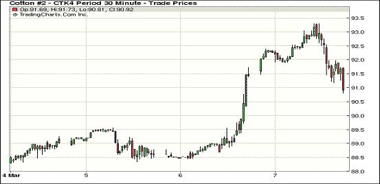紐約期棉放量增倉(cāng)止?jié)q回落(03-07)