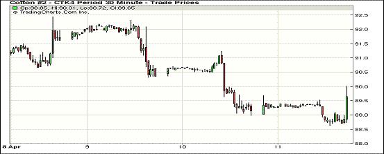 4月11日,紐約期棉遠(yuǎn)期合約上漲,主力合約結(jié)算價(jià)與前一日持平;主力5月合約結(jié)算價(jià)89.02美分/磅不變;7月合約結(jié)算價(jià)90.45美分/磅,漲16點(diǎn);其它合約均普遍上漲。當(dāng)日市場(chǎng)消息面有限,主力合約震蕩區(qū)間88.63-90美分/磅,盤終受買盤支持明顯上漲,但收盤價(jià)仍與前一日持平;市場(chǎng)成交量減少。