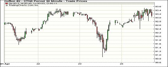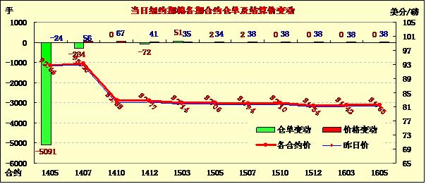 4月24日,在新一周美棉銷售數(shù)據(jù)良好及德州旱情影響春播等因素支持下,紐約期棉除近期5月合約外普遍上揚,主力1407月合約結(jié)算價93.20美分/磅,漲56點;1412月合約收于82.77美分/磅,漲41點;其他遠期合約漲幅34-67點不等。
