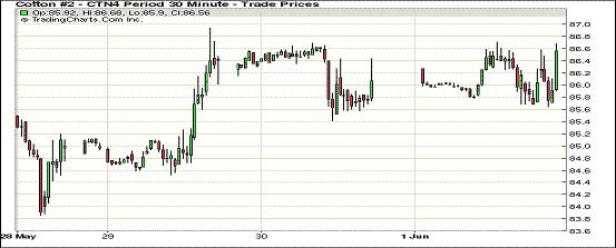 六月第一個(gè)交易日,棉價(jià)普遍小幅收漲;7月合約結(jié)算價(jià)86.48美分/磅,漲21點(diǎn);10月合約結(jié)算價(jià)77.23美分/磅,漲10點(diǎn);1412月合約收于78.06美分/磅,漲59點(diǎn)。當(dāng)日期棉開(kāi)盤后短暫上漲,主力合約盤終站上86美分/磅以上高位,12月合約漲至78美分以上,7/12月合約價(jià)差842點(diǎn),上周五為880點(diǎn),市場(chǎng)成交量增加。