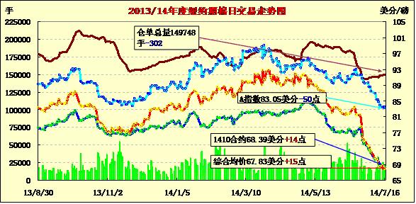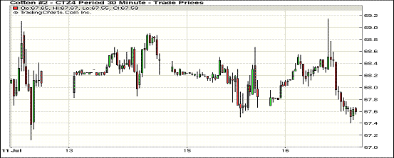 7月16日,美國(guó)德州西部主產(chǎn)區(qū)降雨繼續(xù)對(duì)棉價(jià)形成壓力,期棉普遍小幅收跌;10月合約結(jié)算價(jià)68.39美分/磅,漲14點(diǎn);主力12月合約收于67.34美分/磅,跌11點(diǎn)。當(dāng)日期棉開盤后受市場(chǎng)買盤支持一度上漲,主力合約漲幅近百點(diǎn),收盤前受美棉增產(chǎn)預(yù)期打壓沖高回落;外部市場(chǎng)玉米和大豆上漲。下年度美棉產(chǎn)量份額預(yù)計(jì)約占全球總產(chǎn)的29%,為近五個(gè)年度來(lái)最高,關(guān)注今晚發(fā)布的美棉出口周報(bào)。