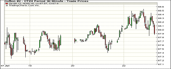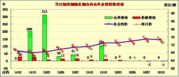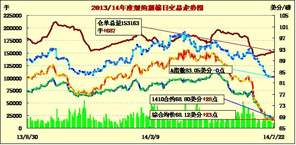 7月22日,市場買盤支持期棉小幅上漲;10月合約結(jié)算價(jià)68.80美分/磅,漲28點(diǎn);1412月合約收于67.91美分/磅,漲22點(diǎn)。當(dāng)日期棉開盤后小幅上漲,漲幅相對(duì)略高于近幾日走勢,盤終收漲22點(diǎn),為7月16日以來高點(diǎn);主力合約連續(xù)數(shù)日小幅震蕩,美股和美元指數(shù)上漲,大豆和玉米下跌。