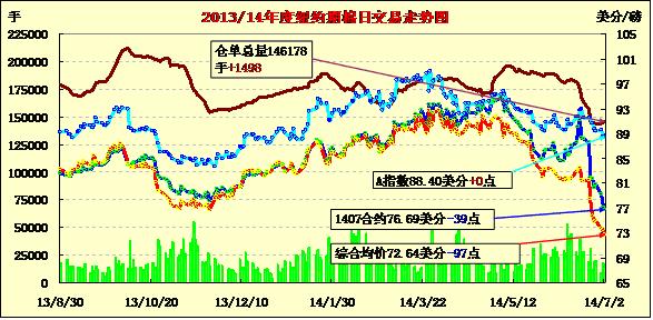 紐約期棉換倉整理繼續(xù)收跌(07-02)