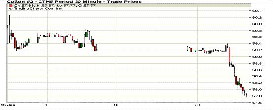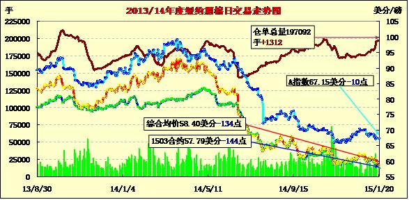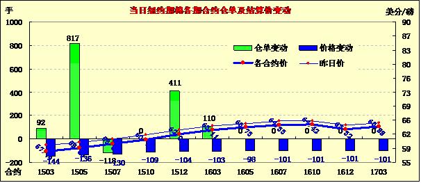 節(jié)后紐約期貨暴跌,主力合約跌破58美分/磅,創(chuàng)歷史新低,其他合約下跌均在100點(diǎn)左右;1503月合約結(jié)算價(jià)57.79美分/磅,跌144點(diǎn),主力1505月合約收于58.66美分/磅,跌136點(diǎn)。當(dāng)日主力合約低開,最高價(jià)59.39美分/磅,午后止損賣單觸發(fā)賣盤,收盤前一小時(shí),期棉全線下跌,主力合約收于57.79美分/磅,跌幅2.43%,僅高于當(dāng)日最低價(jià)2點(diǎn)。周二期棉跌破下行空間,世界宏觀經(jīng)濟(jì)增長放緩,中國GDP增長速度放緩,加上本身就很悲觀的市場情緒,合力重創(chuàng)期棉。當(dāng)日外圍市場大豆下跌,原油繼續(xù)下跌。