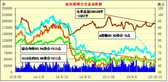 周二紐約期棉大舉反彈;1512月合約結(jié)算價(jià)63.86美分/磅,漲217點(diǎn),1603月合約63.70美分,漲203點(diǎn)。當(dāng)日主力合約平開(kāi)并沖高上漲,突破62.00美分/磅,最高價(jià)至64.16美分/磅,為8月底以來(lái)最高。本周美元指數(shù)低位震蕩,美棉質(zhì)量和產(chǎn)量均受到降雨影響,買盤支撐期貨棉花上漲,分析師指出中國(guó)美印進(jìn)入收獲季節(jié),雖中國(guó)消費(fèi)沒(méi)有好轉(zhuǎn)的跡象,但產(chǎn)量的減少和印度新一輪的收購(gòu)或形成支撐。