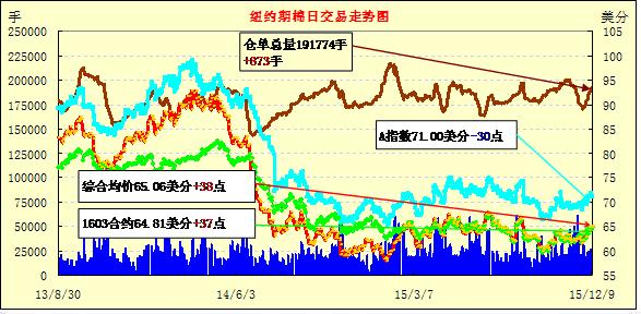 本月USDA報告繼續(xù)下調(diào)世界棉花產(chǎn)量,紐約期棉上漲;1603月合約結(jié)算價64.81美分/磅,漲37點(diǎn);1605月合約收于65.56美分/磅,漲35點(diǎn)。當(dāng)日紐約期棉早間交易略顯平穩(wěn),午后在買盤的刺激下上漲,最高價創(chuàng)8月24日以來最高,后USDA月度報告發(fā)布,期棉回落。9日發(fā)布的USDA月度報告整體偏利多,年度產(chǎn)量和期末庫存均有下調(diào),消費(fèi)量小幅下調(diào),主要出口國美國產(chǎn)量下調(diào),出口減少。