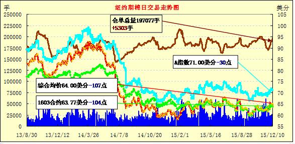 周四公布的美棉出口量較前一周銳減64%,紐約期棉大跌;1603月合約結(jié)算價(jià)63.77美分/磅,跌104點(diǎn),1605月合約64.55美分,跌101點(diǎn)。當(dāng)日主力3月合約全天走勢較弱,前半場交易由于買盤減少而小幅波動,后半場交易時(shí)由于出口低于預(yù)期大跌。11月27日至12月3日的美棉出口量創(chuàng)近三個(gè)月來新低,截至目前美棉出口進(jìn)度達(dá)到預(yù)計(jì)的50%。