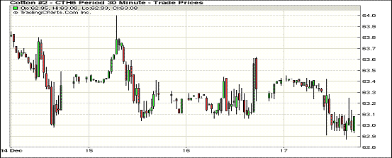 12月17日,美元指數(shù)在加息后上升,紐約期棉完成6連跌;1603月合約結(jié)算價62.99美分/磅,跌26點,1605月合約63.79美分,跌26點。當日3月合約延續(xù)低位小幅調(diào)整走勢,全天震蕩區(qū)間僅58點,早間交易稍有走強,午后下跌。美聯(lián)儲發(fā)布的加息消息給大宗商品帶來消極影響,最新美棉出口略有回升,但總體供需并沒有好轉(zhuǎn),在加息政策下,棉價或繼續(xù)走弱。
