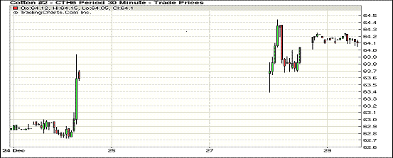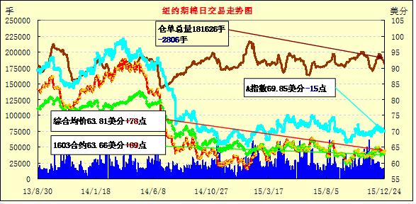 周一紐約期棉繼續(xù)小幅上漲;1603月合約結(jié)算價(jià)63.97美分/磅,漲31點(diǎn);1605月合約收于64.72美分/磅,漲37點(diǎn)。當(dāng)日主力合約開盤后即刻下跌,但很快在買盤的支撐下收復(fù)失地,收盤前主力合約在漲幅區(qū)域內(nèi)窄幅震蕩。 截止本周美棉質(zhì)量繼續(xù)落后,達(dá)到ICE交割標(biāo)準(zhǔn)的新花僅56%,同時(shí)印度棉農(nóng)補(bǔ)貼上漲,棉價(jià)堅(jiān)挺。