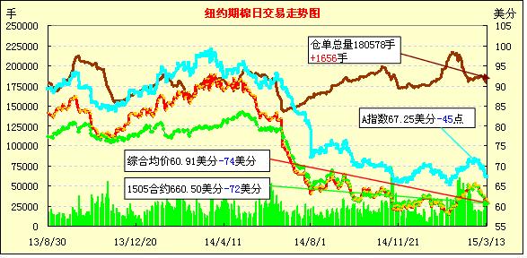 美元強(qiáng)勢(shì)紐約期棉回復(fù)跌勢(shì)(03-13)