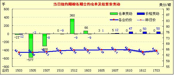 3月4日,ICAC報(bào)告顯示,全球植棉面積減幅未達(dá)預(yù)期,同時(shí)全球消費(fèi)量預(yù)期下降,庫(kù)存激增,紐約期棉繼續(xù)下跌;近期3月合約收于63.61美分/磅,跌12點(diǎn);主力1505月合約63.60美分/磅,跌3點(diǎn)。當(dāng)日期棉開(kāi)盤(pán)后各合約普遍上漲,盤(pán)終前近期合約小幅收跌,遠(yuǎn)期合約上漲,市場(chǎng)投資者獲利平倉(cāng)是一方面因素,ICAC供需報(bào)告利空同樣對(duì)棉價(jià)構(gòu)成壓力;外部谷物市場(chǎng)小麥和油籽期貨下跌。據(jù)最新發(fā)布的ICAC全球供需報(bào)告,2014/15年度,由于全球棉花供過(guò)于求,再加上用棉國(guó)進(jìn)口量下滑,多國(guó)期末庫(kù)存將超過(guò)近幾個(gè)年度數(shù)值。關(guān)注今日發(fā)布的USDA美棉出口報(bào)告和下周的供需預(yù)測(cè)報(bào)告。