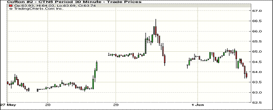 6月1日美元指數(shù)升至97上方,紐約期棉重回跌勢(shì);1507月合約結(jié)算價(jià)63.75美分/磅,跌60點(diǎn);1512月合約收于64.07美分/磅,跌57點(diǎn)。當(dāng)日紐期主力合約上行壓力較大,盤中大部分時(shí)間在65.50只65.20美分/磅之間震蕩。但后半場(chǎng)交易弱勢(shì)明顯,收盤價(jià)處于當(dāng)日低位,跌幅0.93%。當(dāng)日外部市場(chǎng)漲跌互現(xiàn),美經(jīng)濟(jì)數(shù)據(jù)總體良好,美元指數(shù)沖回97關(guān)口以上。上周美棉新花播種進(jìn)度明顯加快,達(dá)61%,德州播種46%。