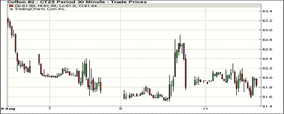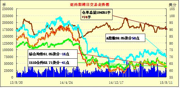 8月11日,人民幣巨幅貶值,紐約期棉重回跌勢;1512月合約結算價61.82美分/磅,跌14點;1603月合約收于61.83美分/磅,跌12點。當日主力合約低開并小幅震蕩,最高價62.30美分/磅,收盤前回落。8月11日,人民幣兌美元中間匯率6.2298,較前一日漲1.9%,創(chuàng)匯改來單日最大漲幅。人民幣巨幅貶值,引起市場擔憂,紐約期棉重回跌勢。另據(jù)最新美棉苗情,至本周初美棉座果率僅68%,低于去年同期,以及新年度印度或繼續(xù)啟動最低價籽棉收購政策,以上因素將支撐棉價。